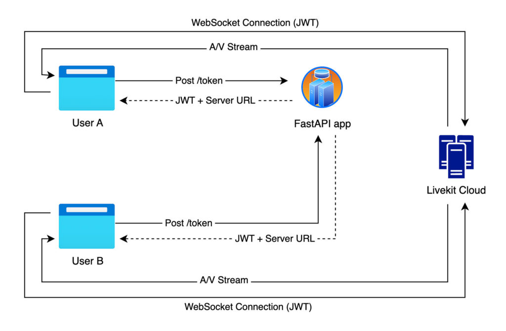 The FastAPI server sits in the middle – it verifies identities & hands out tokens. LiveKit handles the heavy lifting of the actual media transport over WebRTC.